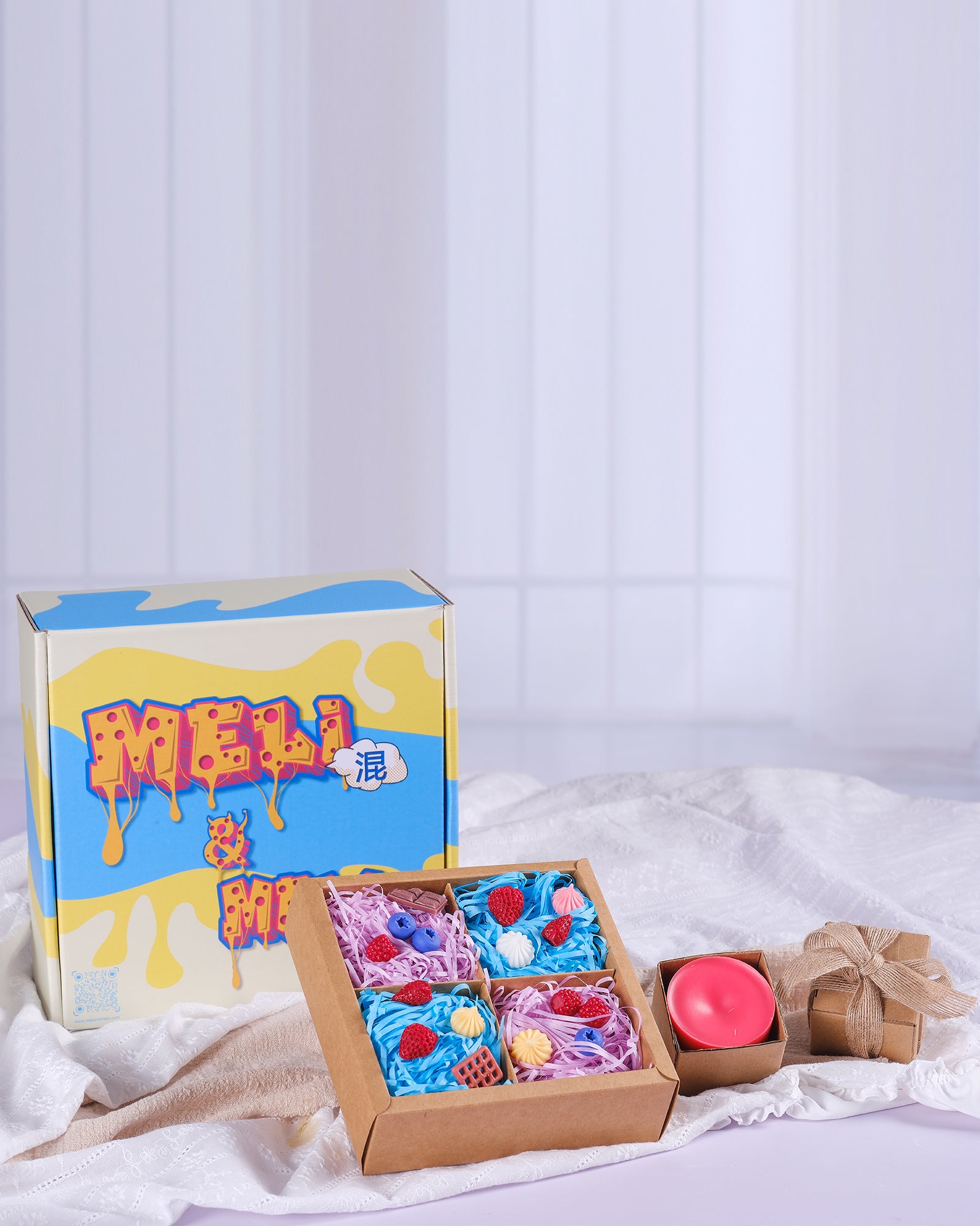 Kawaii Toppings: A small bag of cute candle toppings like delicious strawberries, dark chocolate, sweets, and Happy Birthday sign to add beauty to your creation.